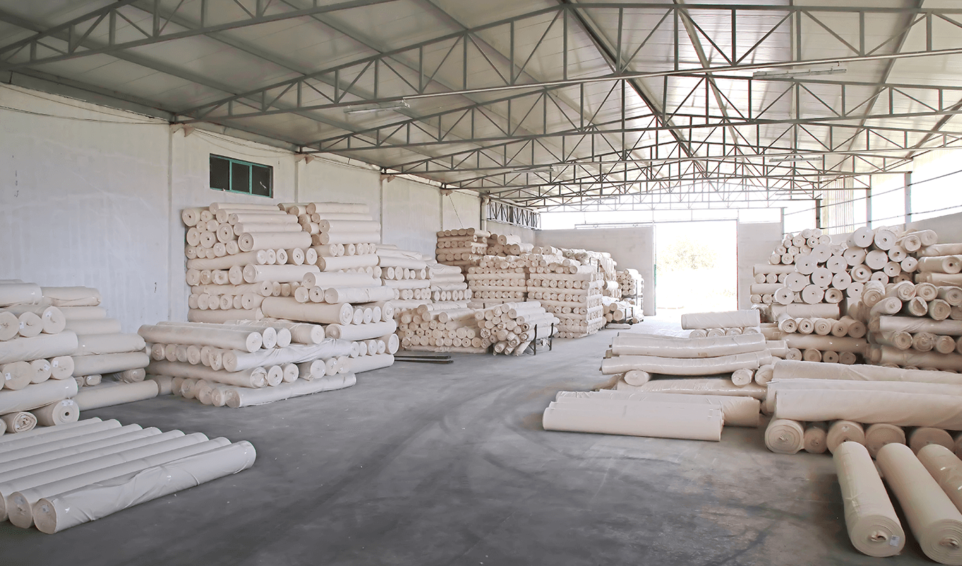 生織が織機から出てくると、製品のタイプに合わせたスピードで、品質検査機器でチェックされます。不適合があった場合、2級品として分類されます。1級品と認定された布地は、出荷ラインに移動します。 出荷設備では、顧客要望に応じて、ロール(100-500m単位)に巻いた形で用意され、ドックで(4500-5500メートル)、1段または2段重ねてパレットに乗せます。パッキングおよびラベリングもこの施設で、顧客要望に応じて行われます。