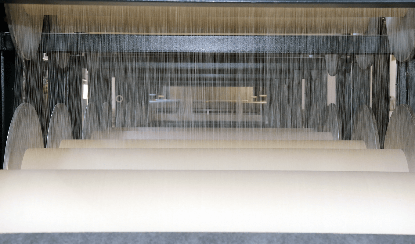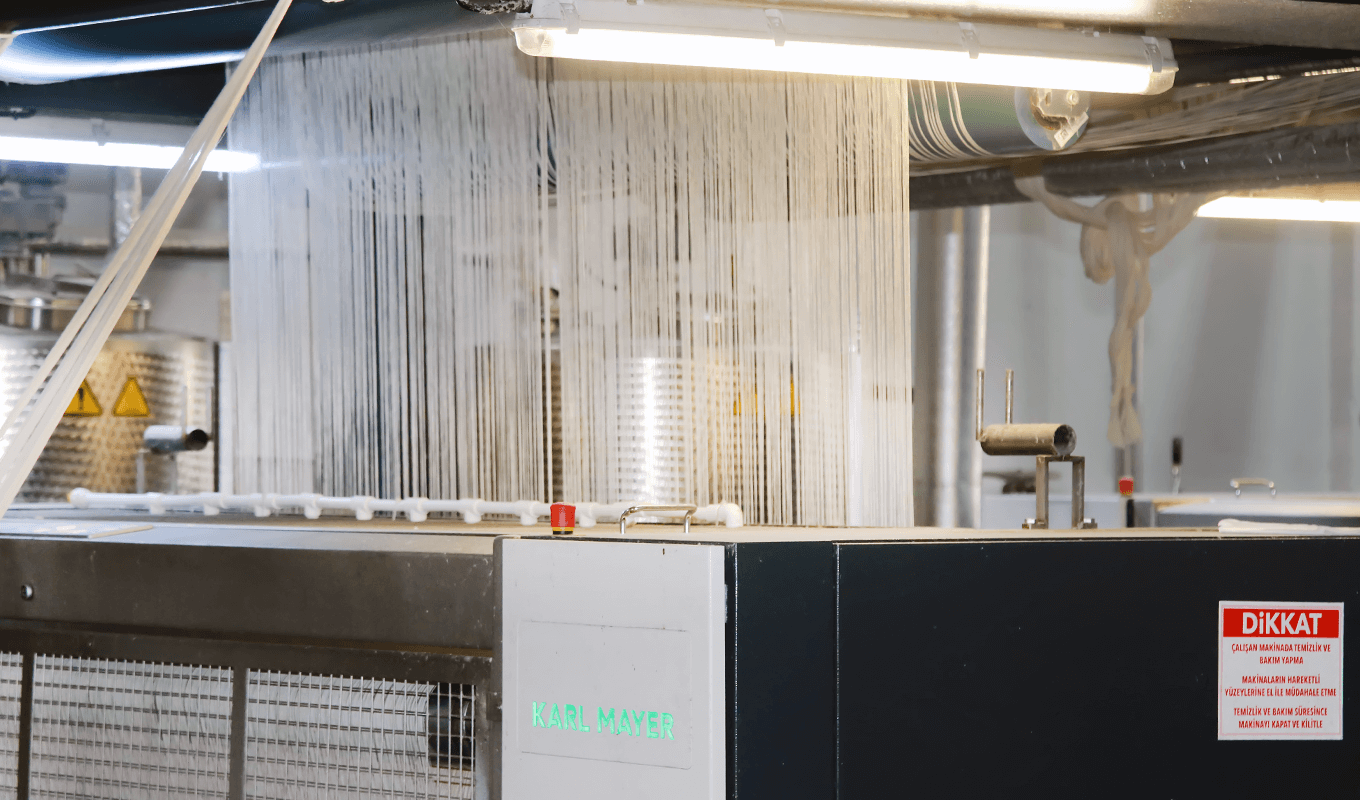 Процесс сортировки необработанной пряжи, подготовленной на линии серийного снования, осуществляется с производительностью 100 000 метров в день. Производство осуществляется на калибровочной машине Karl Mayer.